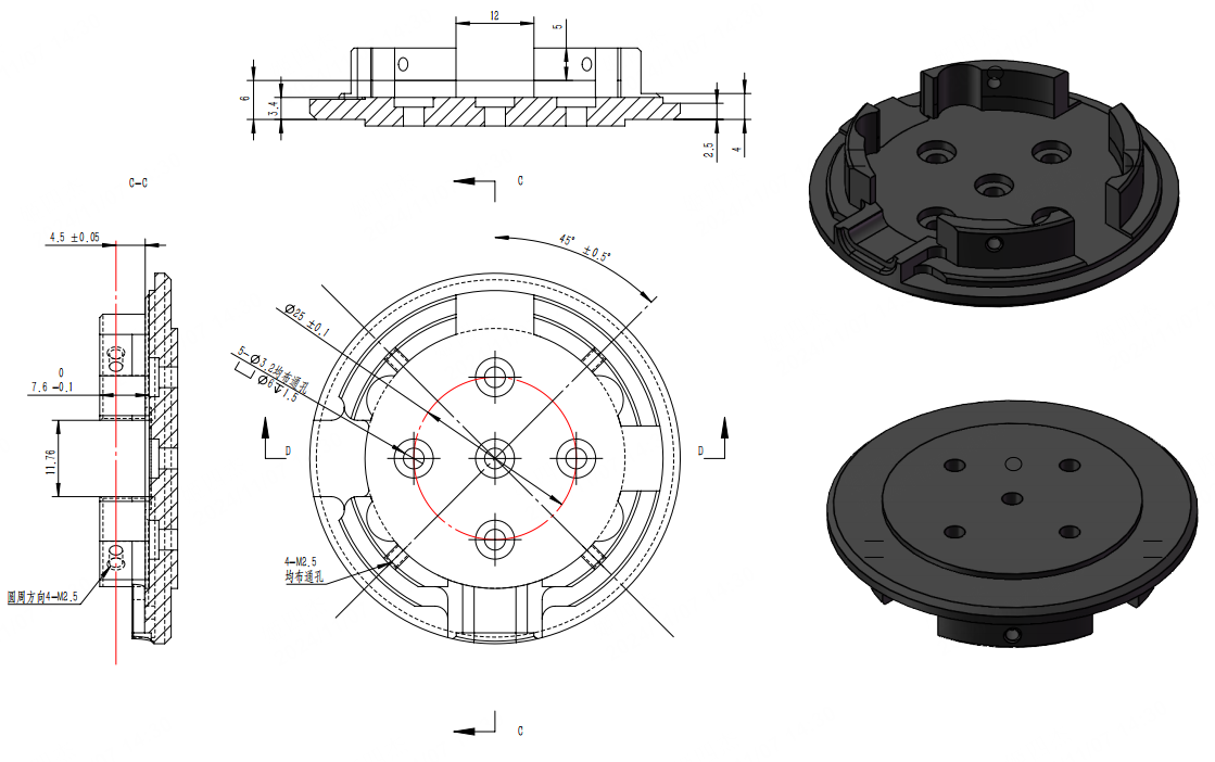 用户如将OmniPicker接到其他机械臂上,可参考如下安装接口图纸自行设计转接件,并按照3.2 灵犀X1组件作业说明 完成组装。