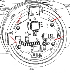 d.将控制板掀起,露出磁铁,注意掀起过程中控制板的3根焊线不能断开,如下图;